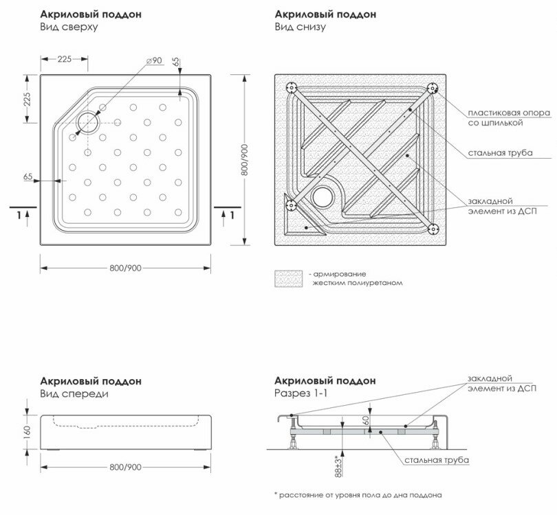 Поддон квадрат 0,9*0,9*0,06 "Universal N"акрил d 90 (каркас+экран) выс.16 см BLACK интересное:
