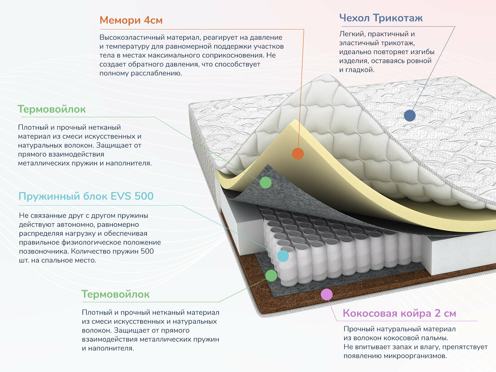 | Наполнитель | комбинированный (термовойлок + кокосовая койра + пенополиуретан) |