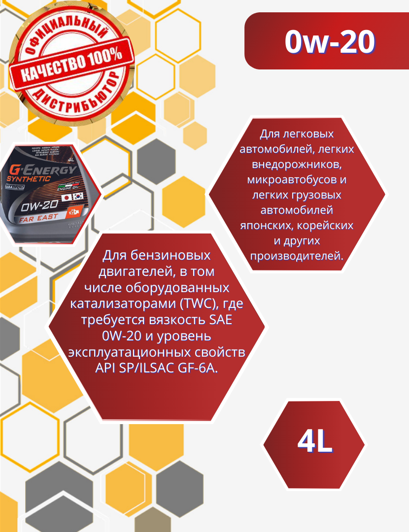 Синтетическое моторное масло G-Energy Far East 0W-20, 4 л, 1 шт.
