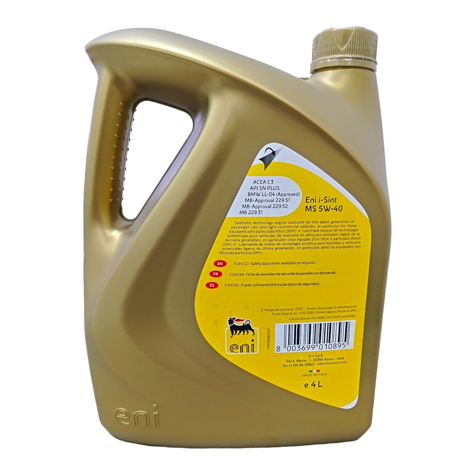 ENI ENI5W40ISINTMS4 ENI Масло моторное синтетическое 4л - для легковых автомобилей API SN PLUS, ACEA С3,