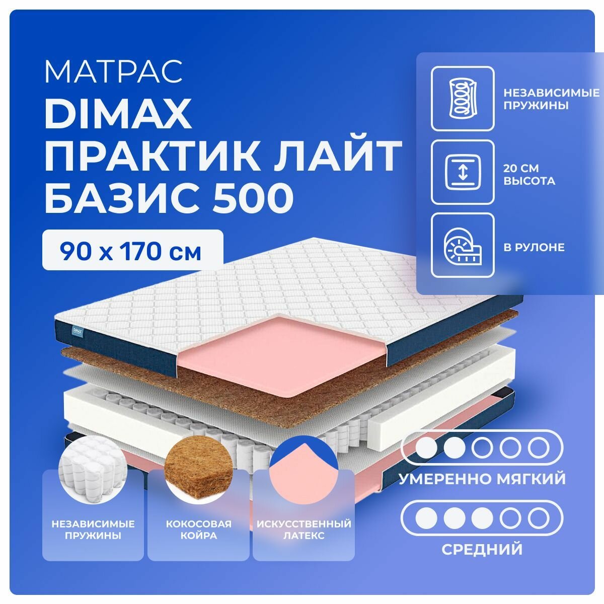 Матрас Dimax Практик Лайт Базис 500 90х200, стандартный