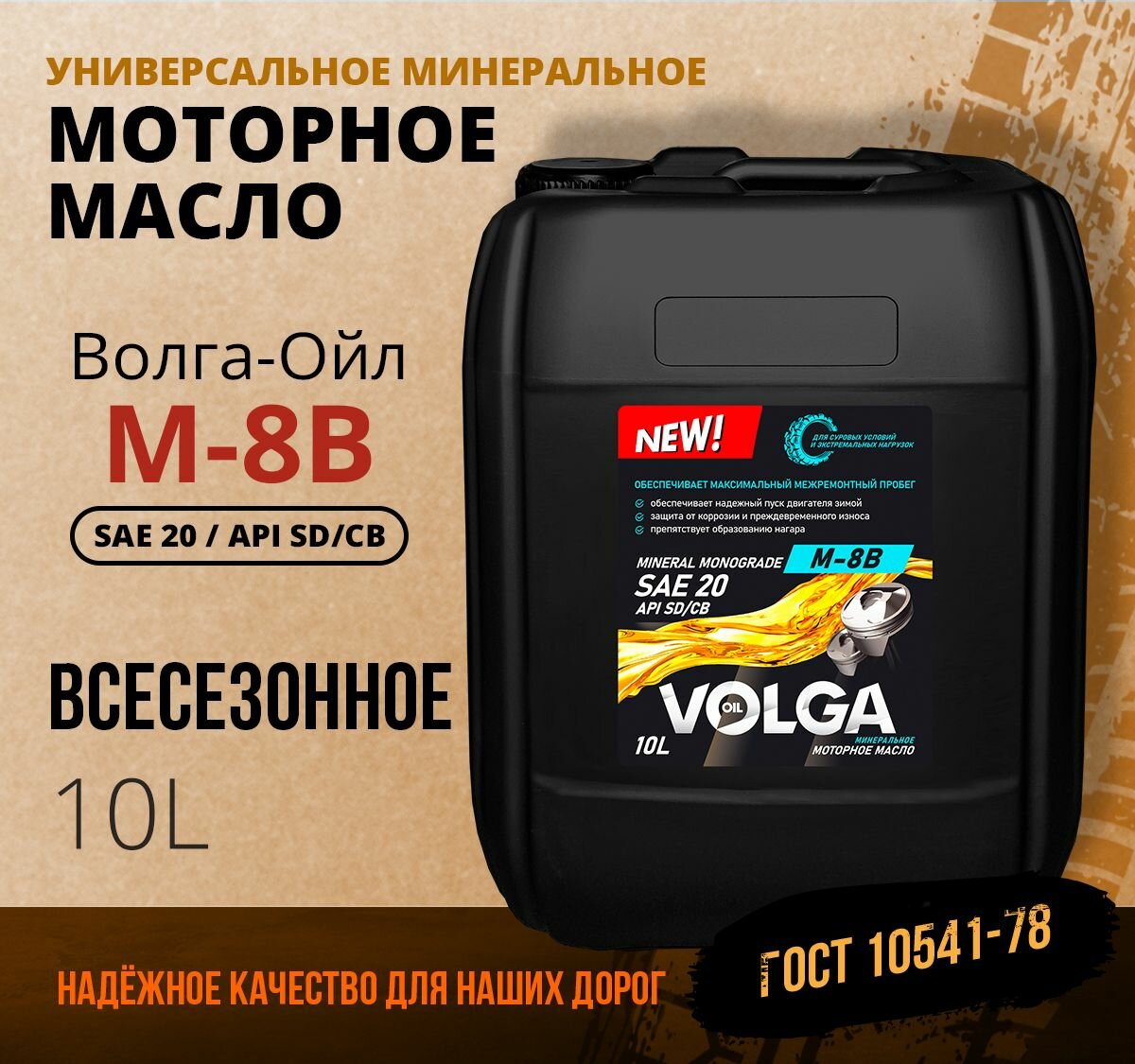 Минеральное моторное масло Волга-ойл Универсальное М8В, 10 л