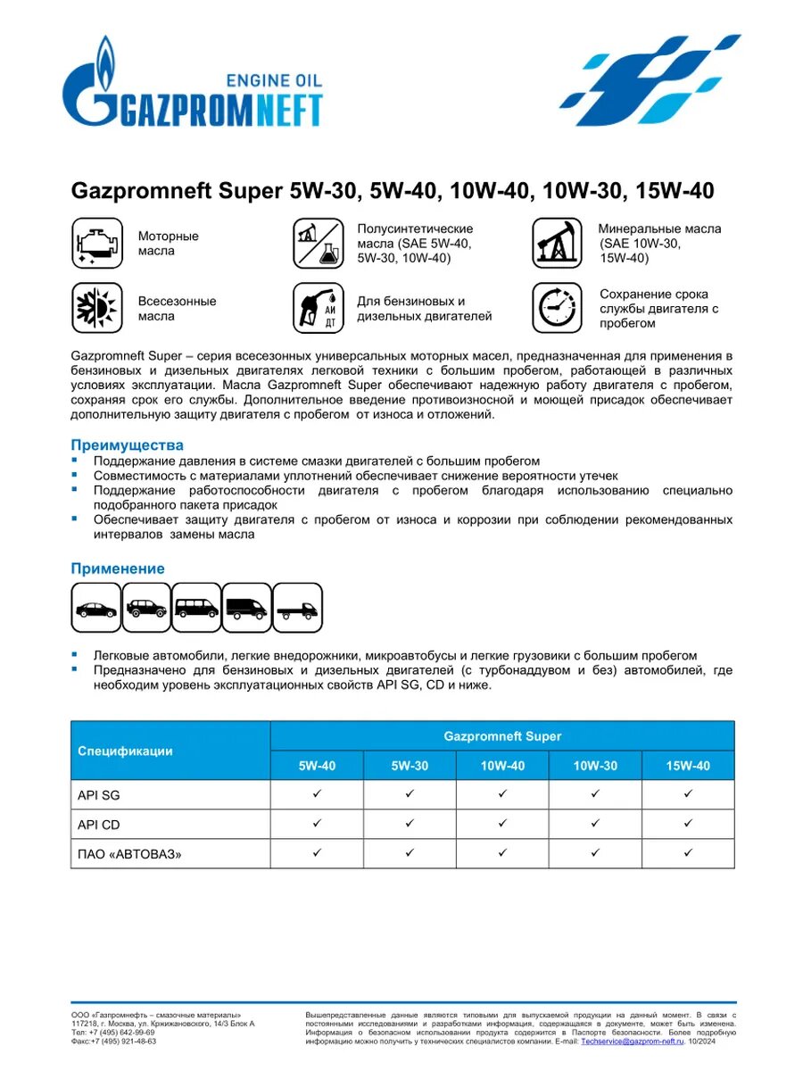 Gazpromneft Масло Super 10W-30 4л, 2389901324 .
