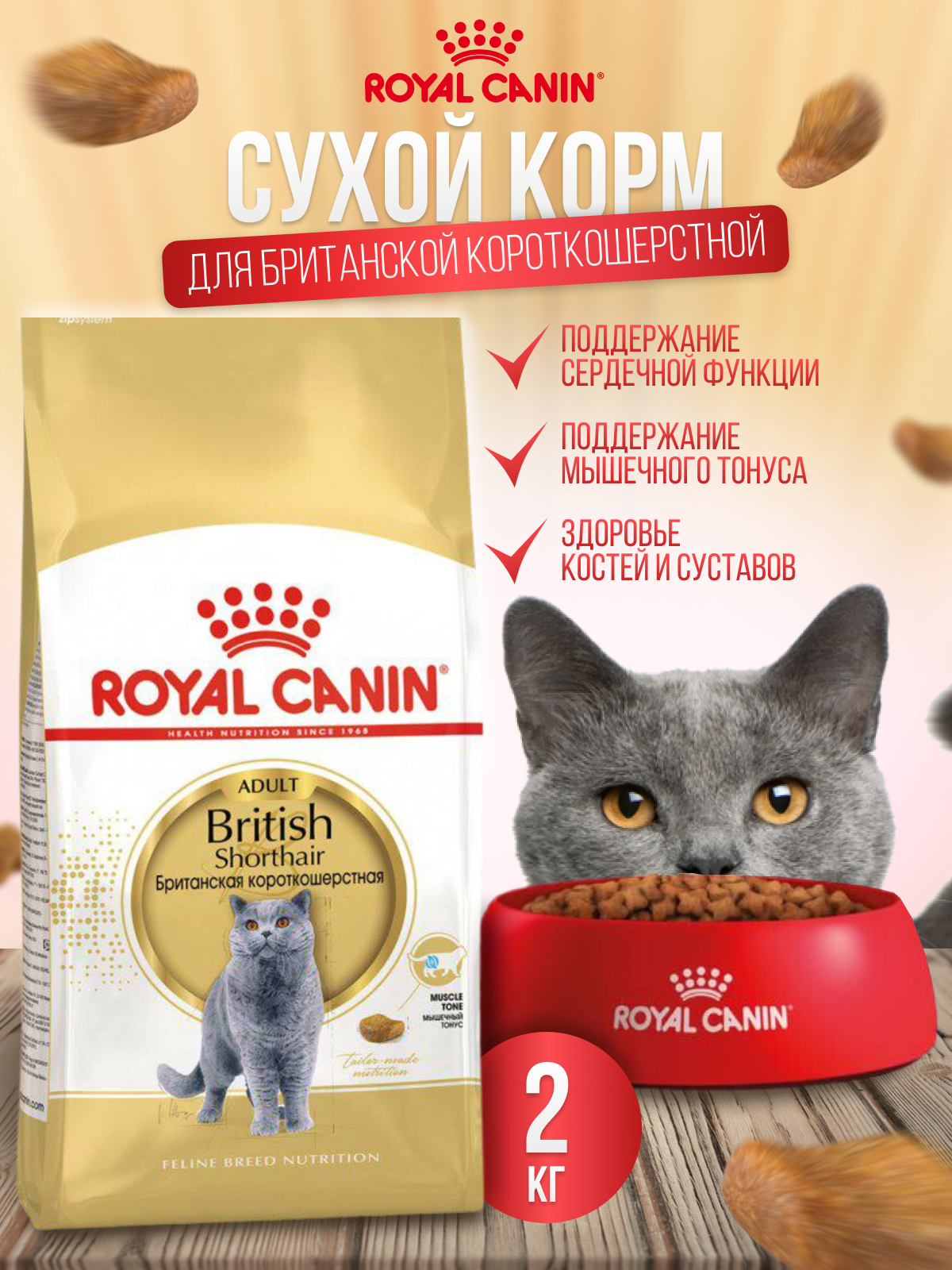 Корм Royal Canin сухой сбалансированный для взрослых британских короткошерстных кошек, British Shorthair Adult, 2 кг