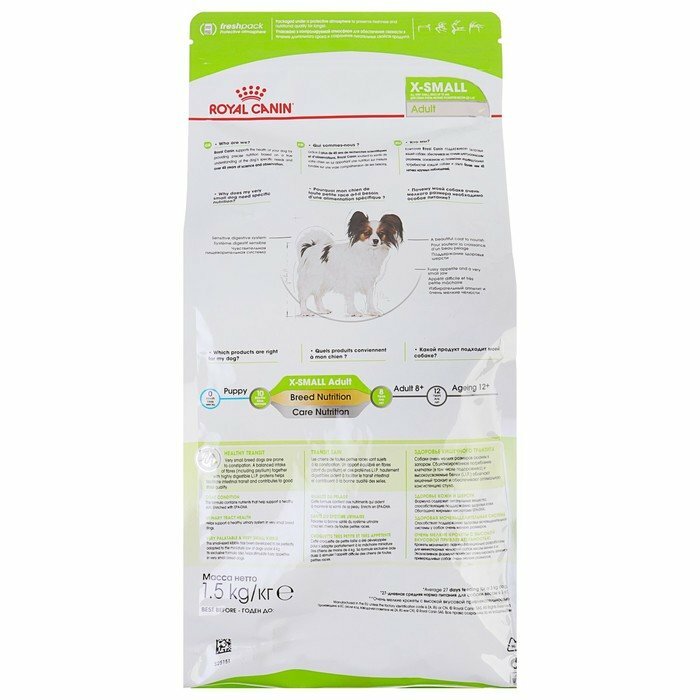 Ниже Вы можете прочитать отзывы на Royal Canin X-Small Adult сухой корм для собак миниатюрных размеров 1,5 кг, ознакомится с подробными характеристиками, посмотреть интересные обзоры и фотографии на Royal Canin X-Small Adult сухой корм для собак миниатюрных размеров 1,5 кг.