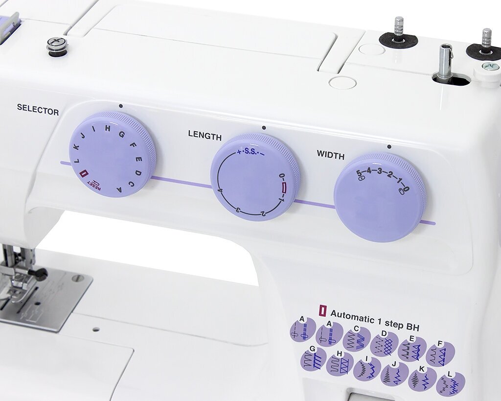 | Плюсы: | Купила недвано, делюсь впечателниями: несмотря на вертикальный челнок, машина тихая. Хорошо держит строчку, удобная рукавная платформа, заначка для мелочей, чехол. Всегда можно найти запчасти, лапки и прочие расходные материалы. Простая, и удобная. Надежность проверю в проценнсе эксплуатации. Пока 5+. |