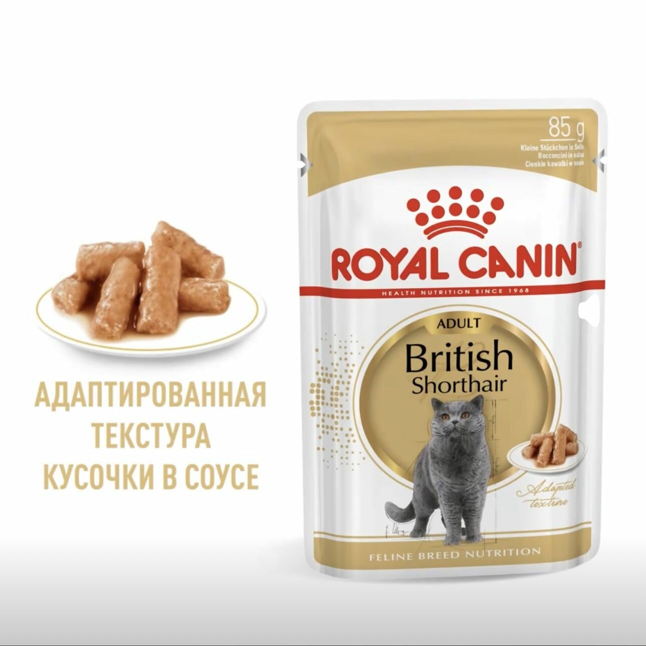 Влажный корм для британских кошек, соус, пауч, 85 г