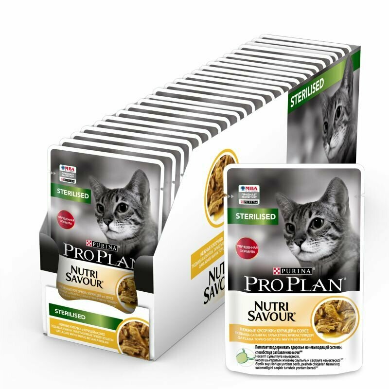Корм для кошек PRO PLAN Sterilised для стерилизованных, с курицей в соусе пауч 85г (упаковка - 26 шт)