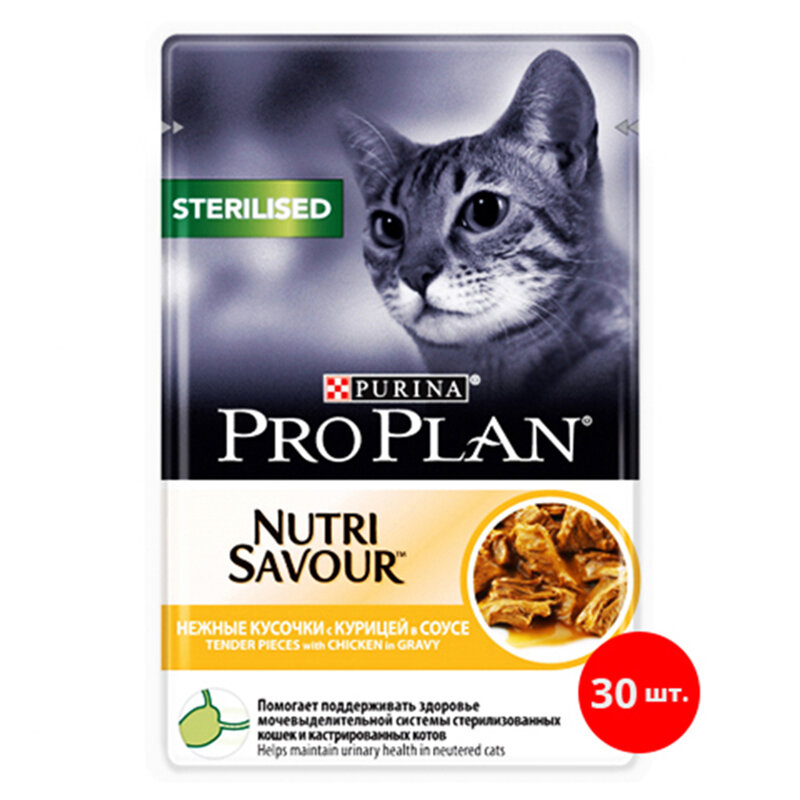 Купить Влажный корм для стерилизованных кошек Purina Pro Plan Sterilised Nutri Savour Adult Chicken, с курицей, 30 шт. х 85 г (кусочки в соусе)