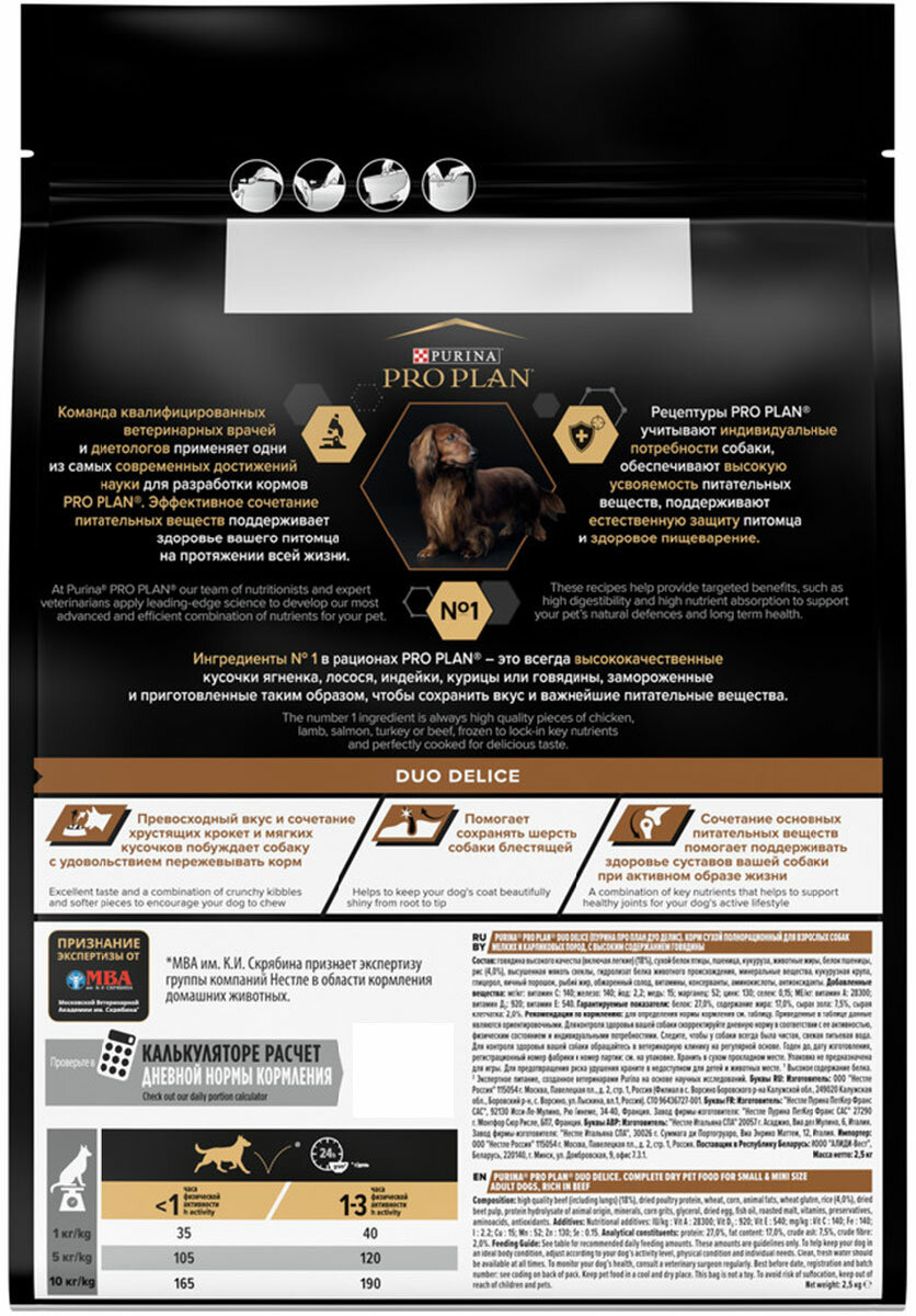 СохранитьPurina Pro Plan Сухой корм для собак мелких пород с говядиной и рисом (DUO DELICE) 12251945 1234047912414092 | DUO DELICE 2,5 кг 19002 (2 шт) интересное: