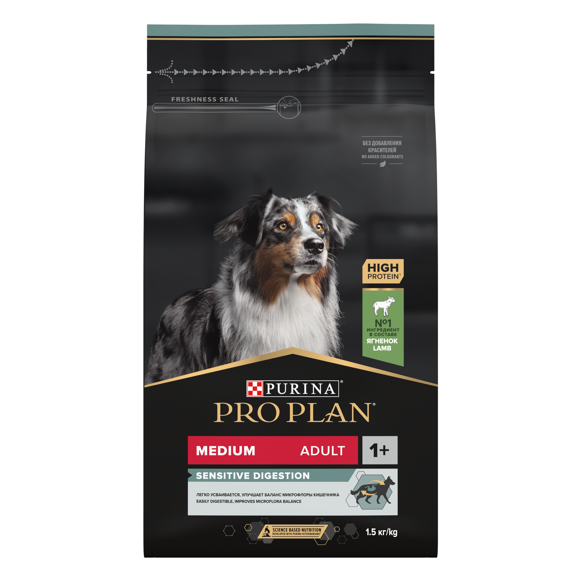 Pro Plan Medium Adult Sensitive Digestion для взрослых собак средних пород Ягненок, 1,5 кг.