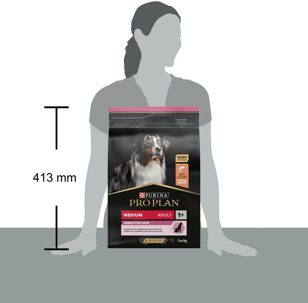 Pro Plan корм для взрослых собак средних пород с чувствительной кожей, лосось и рис 3 кг