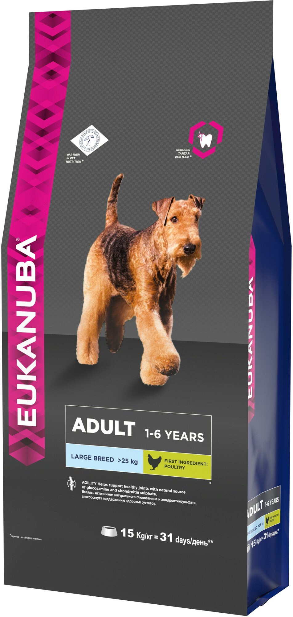 Корм для взрослых собак крупных и очень крупных пород Eukanuba Adult Large Breed 1+ years сухой, 15 кг