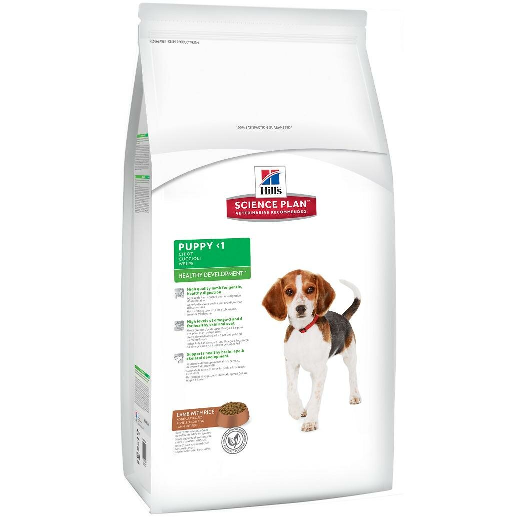 Корм Hill's Science Plan Healthy Development для щенков средних пород до 12 месяцев ягненок с рисом, 12 кг