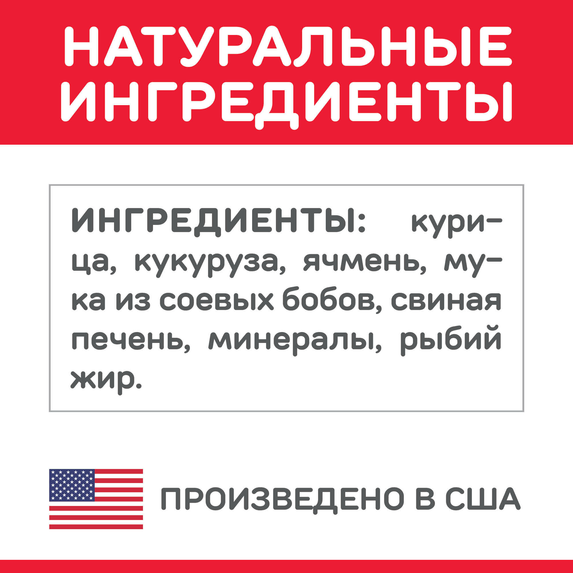 | Состав | курица (28%), кукуруза, ячмень, мука из соевых бобов, свиная печень, минералы, рыбий жир |