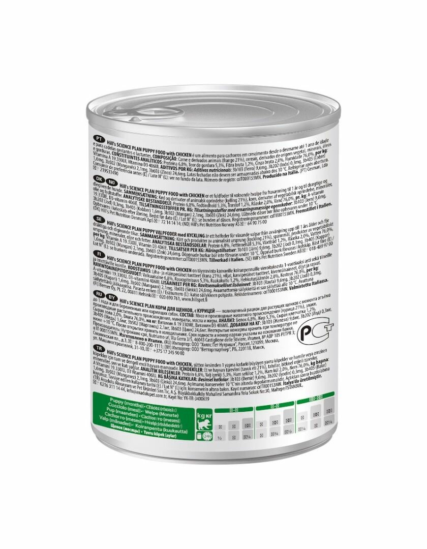 Корм консервированный Hill's Science Plan для щенков, для поддержания здорового роста и развития, с курицей,12шт 370 г