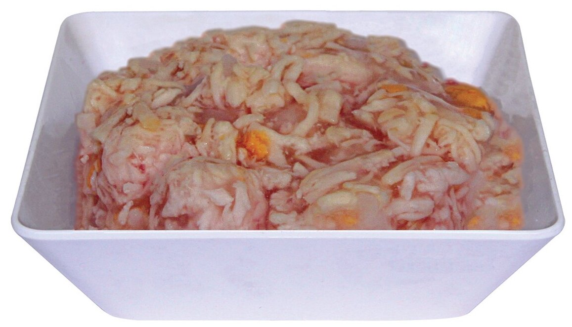 | Состав | куриная грудка 42%, сыр, рис, вода |