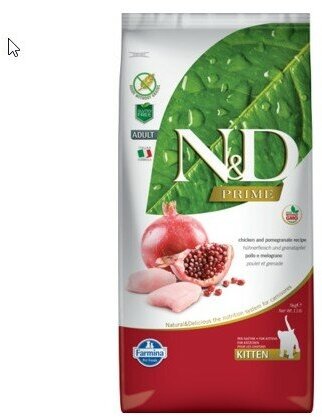 Корм для котят, беременных и лактирующих кошек сухой Farmina N&D PRIME Chicken & Pomegranate Kitten, курица/гранат, 10 кг