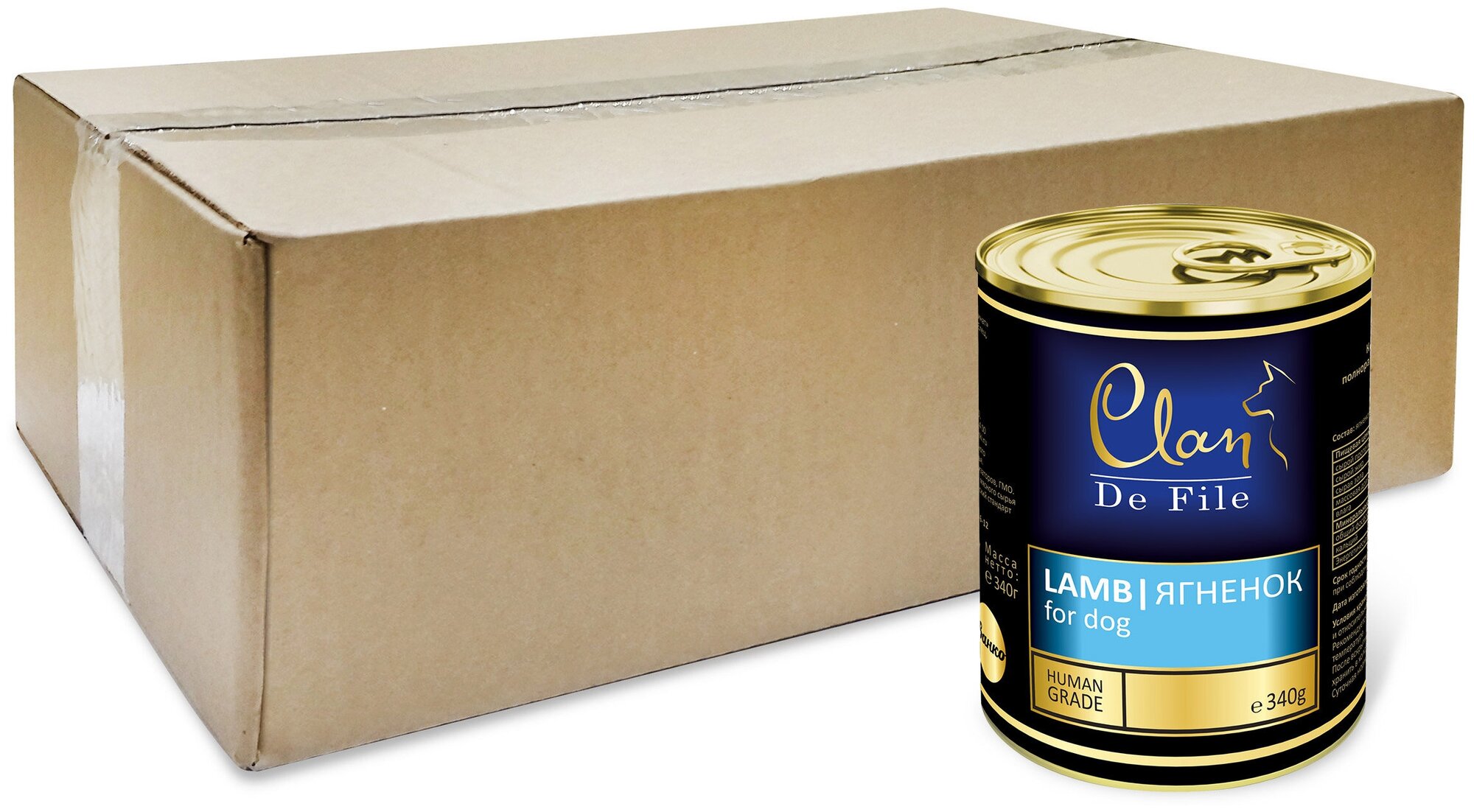 Корм полнорационный консервированный CLAN De File для собак Ягненок, 340гр, 12 шт.