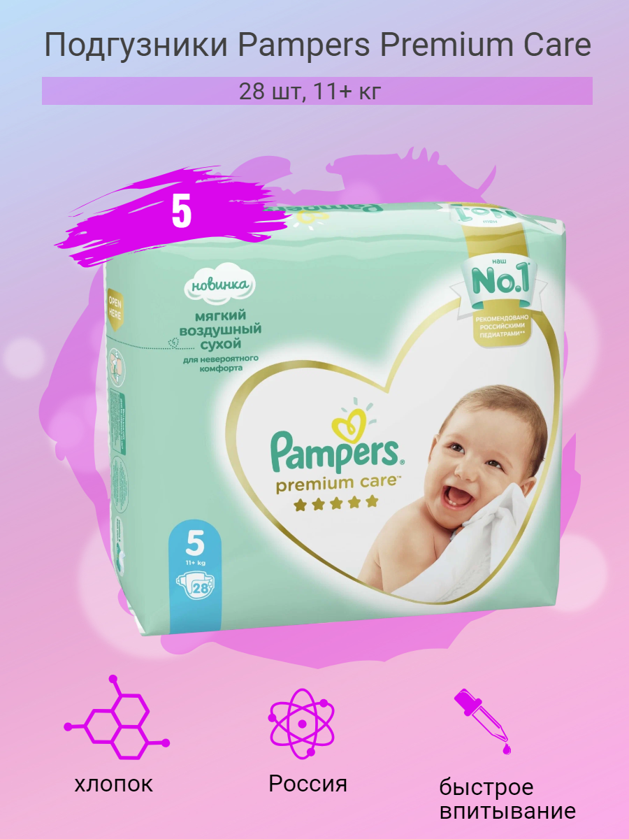 Купить Подгузники Pampers Premium Care, размер 5, 28 шт, 11+ кг