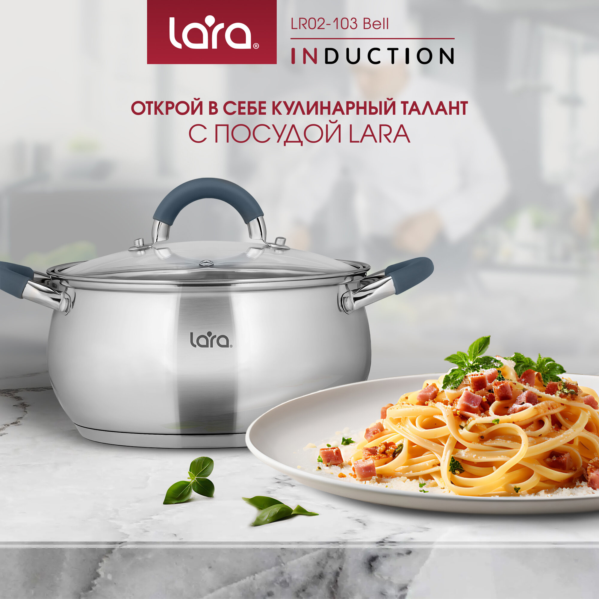 LARA LR02-103 Набор посуды Bell, 3 пр., (кастр. 2.7л + 4,7л + чайник 2,5л ) стеклян. крышки
