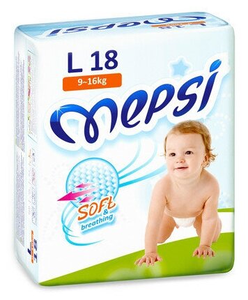 Подгузники Mepsi детские, L (9-16кг), 18 шт.
