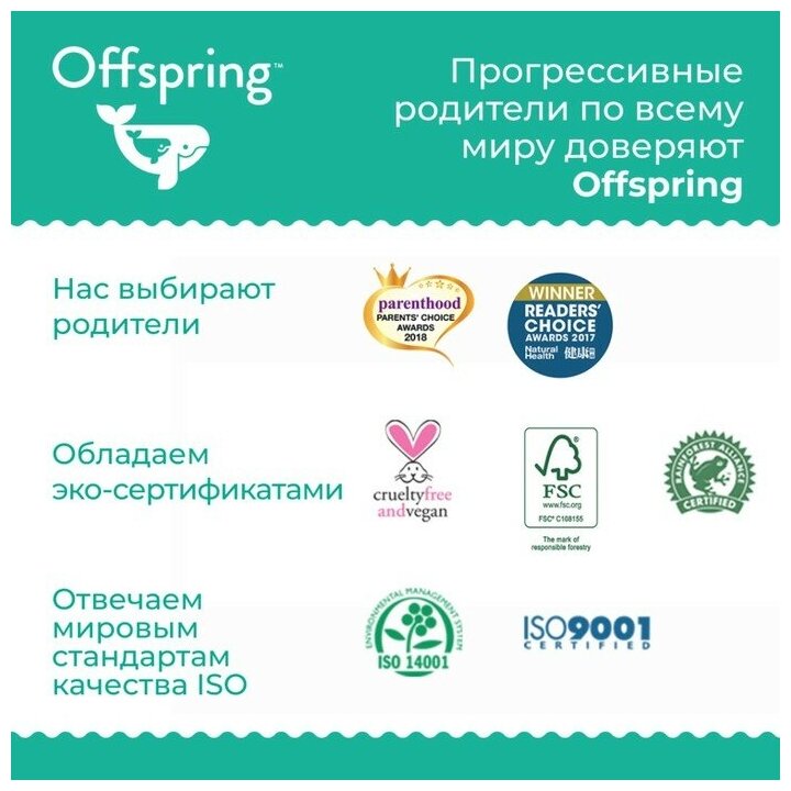 | Отзыв: | По моему мнению, качество Offspring не сравнимо ни с какими другими подгузниками. Пробовали разные фирмы, в одних бортики натирают дочке ножки, в других – постоянные подтекания, третьих хватало буквально на пару часов и «потоп», еще одни – расстегивались легким движением ручки ребенка. Сейчас мы пользуемся трусиками Offspring, тех проблем, которые я перечислила, нет вообще. Все крепко и надежно. Мы довольны! |