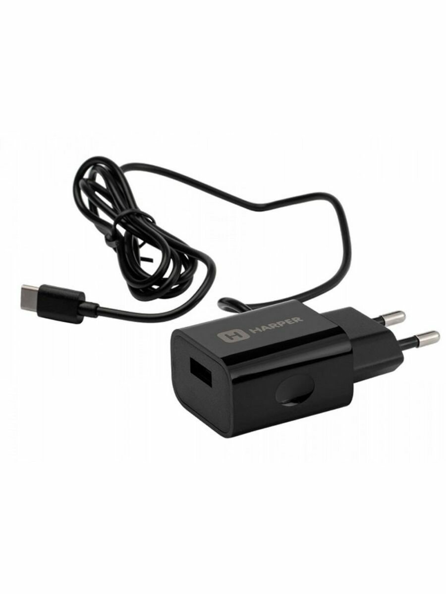 Купить Сетевое зарядное устройство HARPER WCH-5118 черный, USB + встроенный кабель Type-C