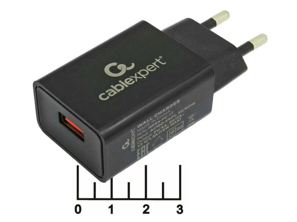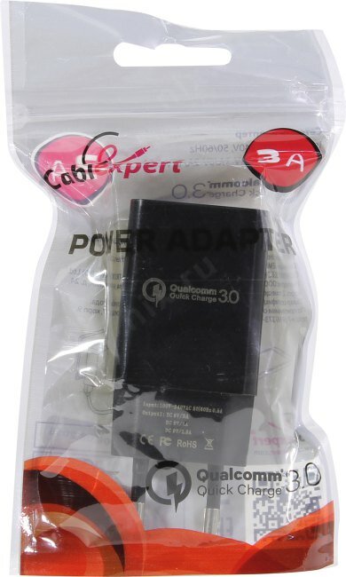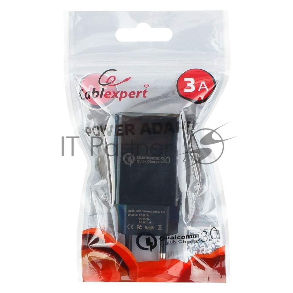 Зарядное устройство 220V -> USB 5V Cablexpert MP3A-PC-17 QC 3.0, черный