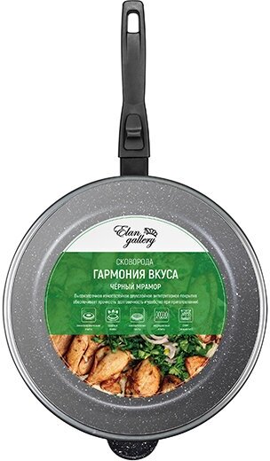 Сковорода глубокая 28 см Elan Gallery гармония вкуса Черный мрамор с крышкой D28, съёмная ручка