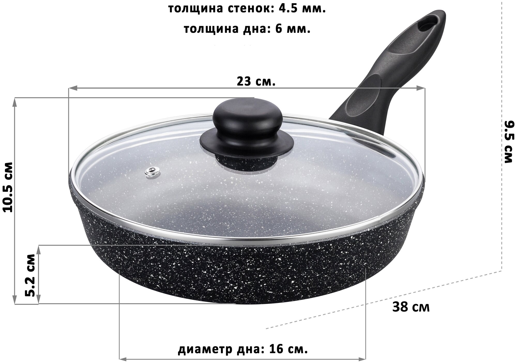 Сковорода глубокая 22 см гармония вкуса "Черный мрамор" С крышкой D22, с несъёмной ручкой интересное:
