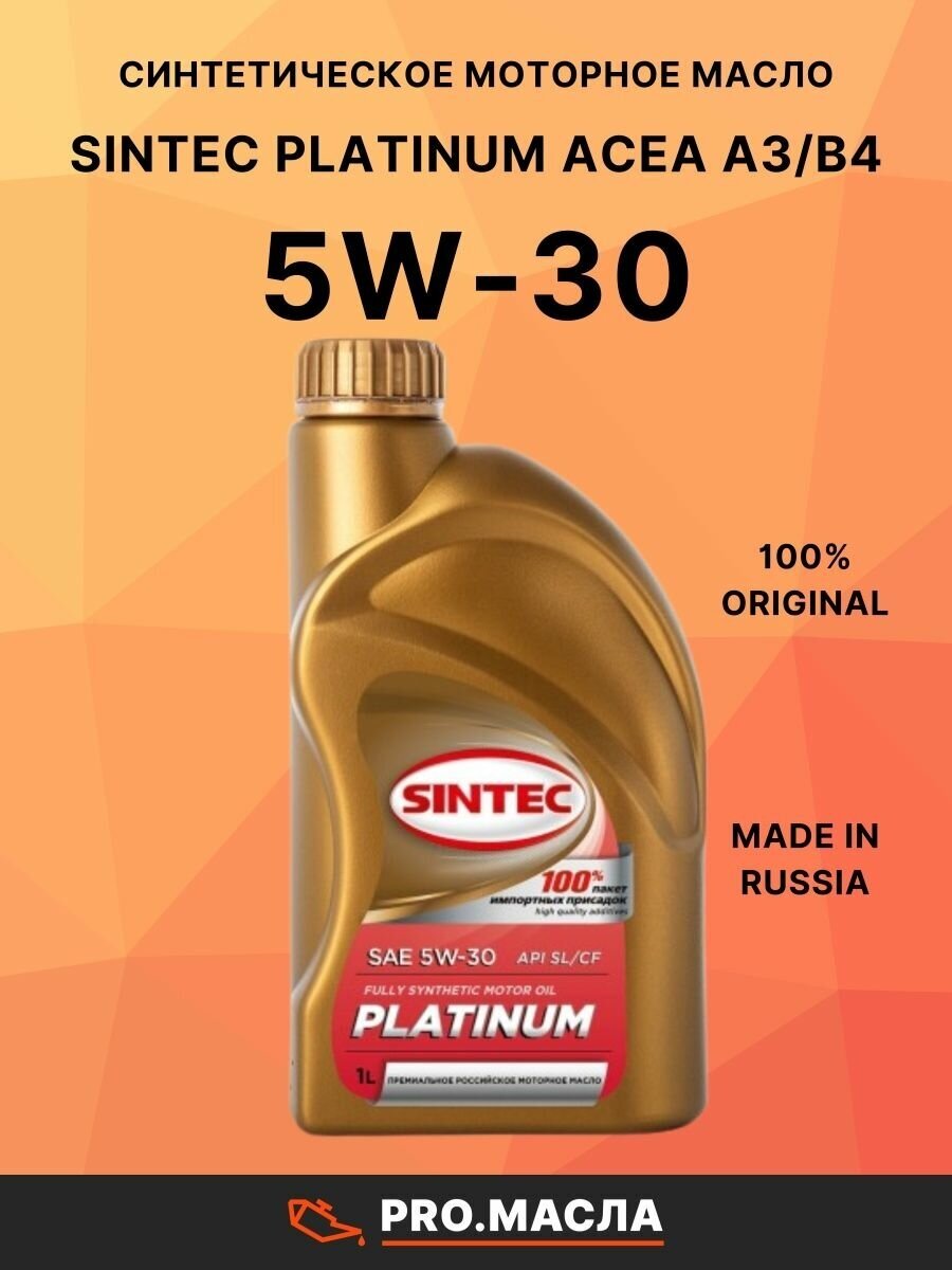 Масло sintec 5w30 platinum api sl/cf acea a3/b4 1л син