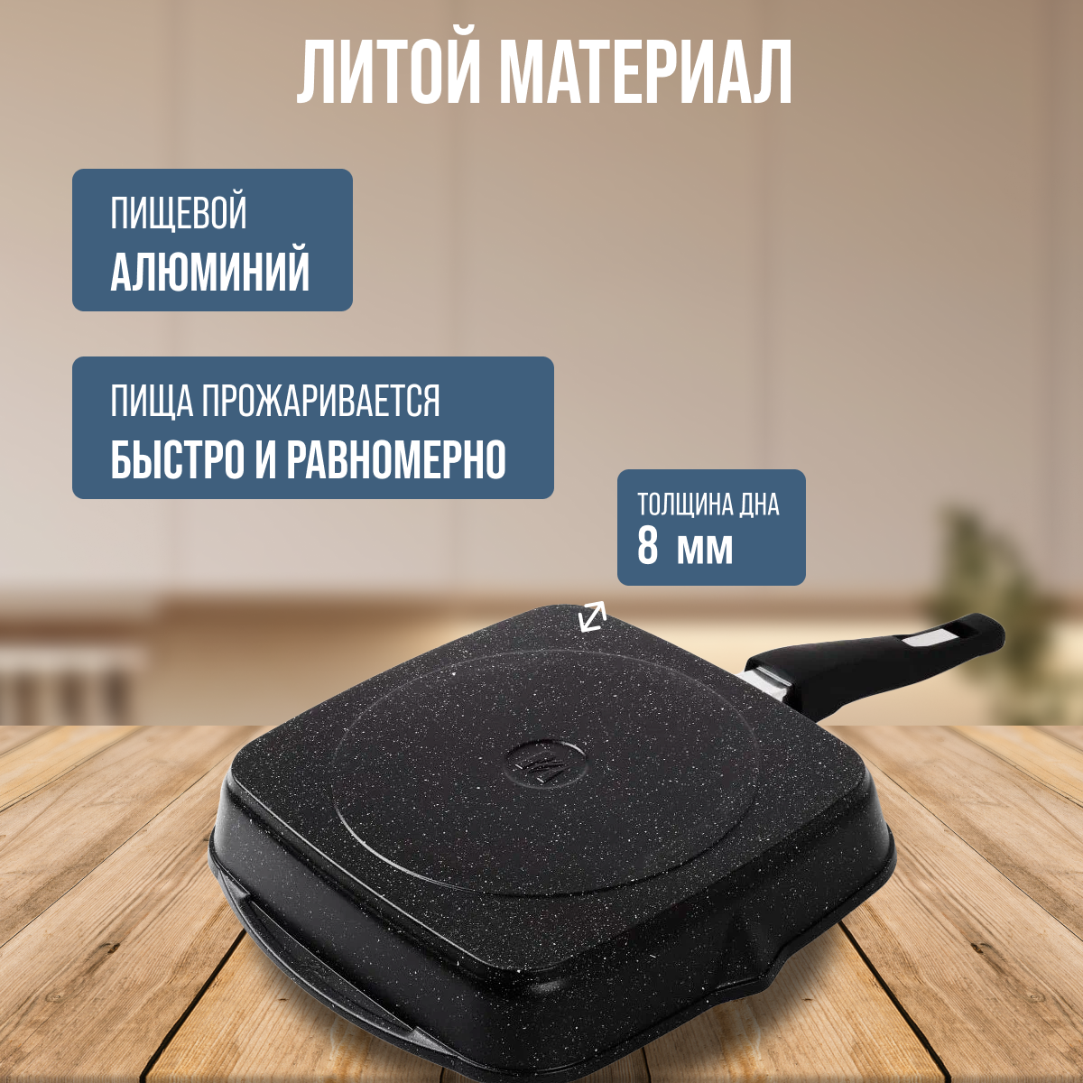 Сковорода-гриль мечта посуда мечта Гранит black, квадратная, съемная ручка, 26 см