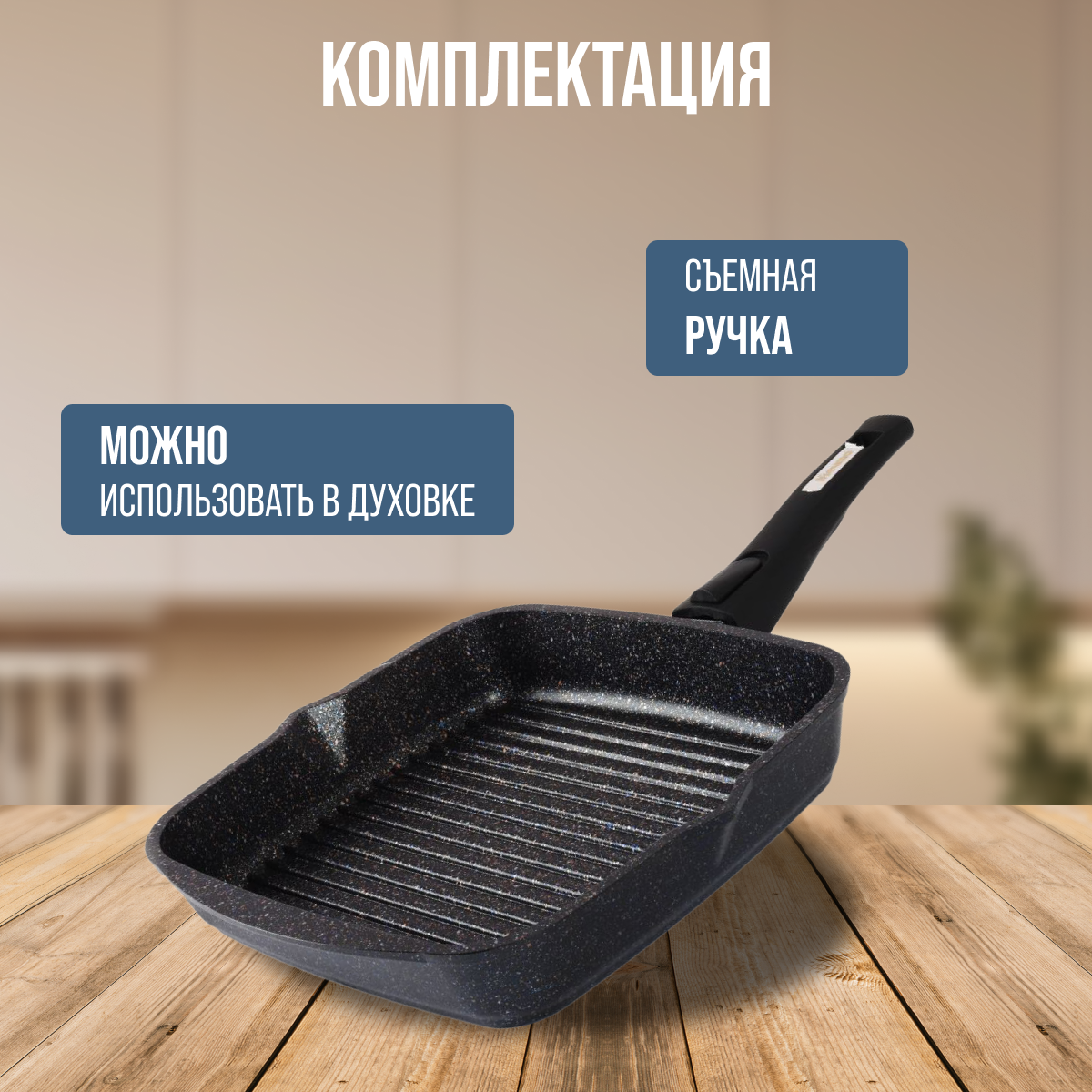 Сковорода-гриль 26х26см АП съемная ручка Гранит 066701