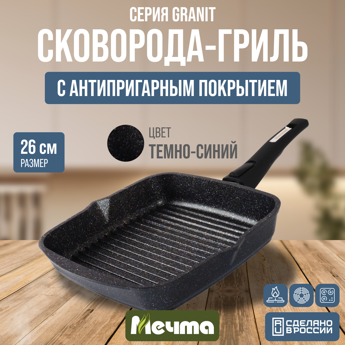 Сковорода-гриль Мечта Посуда Мечта "Гранит star" квадратная, съемная ручка 26 см (066803)