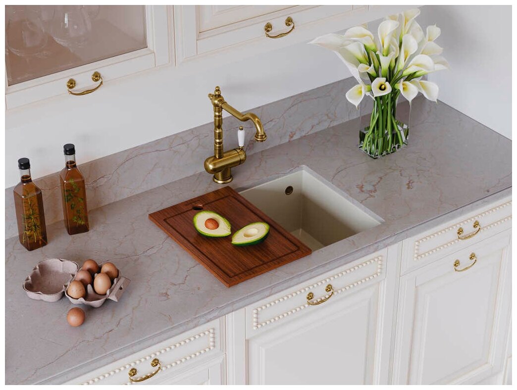 Кухонная мойка Карельский камень модель 150 (575*470) Q6 Слоновая кость