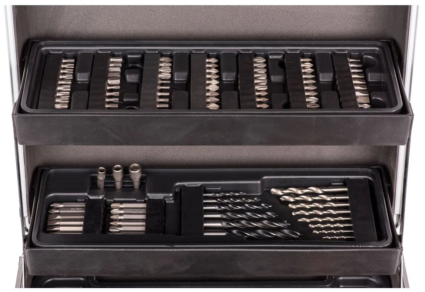 | Подробная комплектация | аккумулятор (2 шт.), зарядное устройство, набор оснастки 158пр., кейс |
