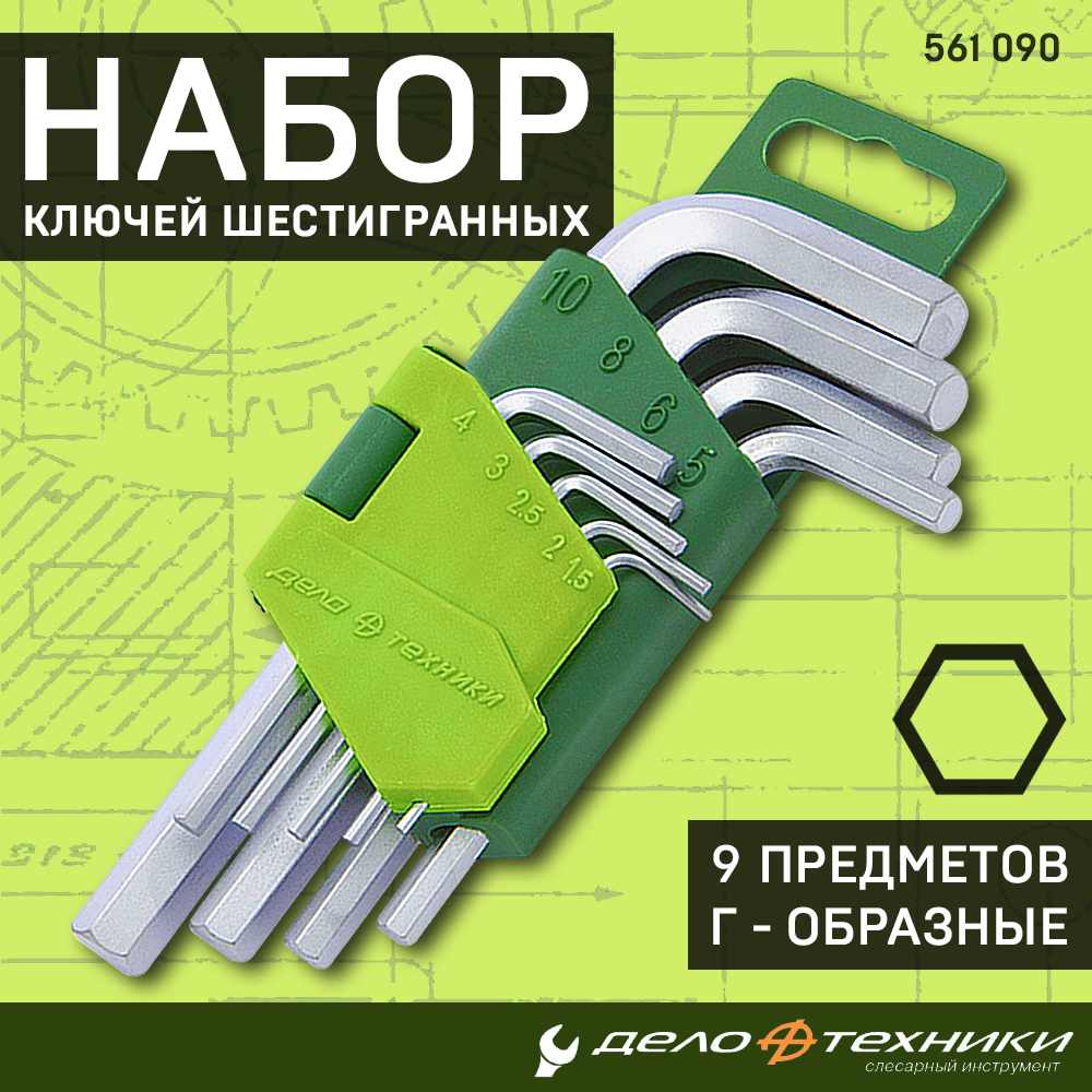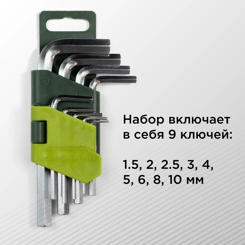 Набор ключей шестигранных 9шт короткие (1.5, 2, 2.5, 3, 4, 5, 6, 8, 10 мм ) дело техники 561090