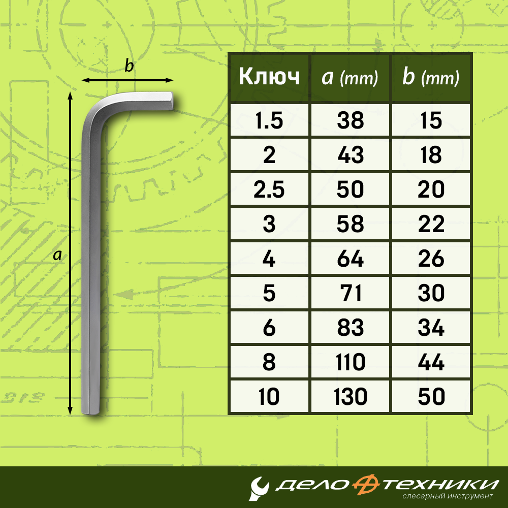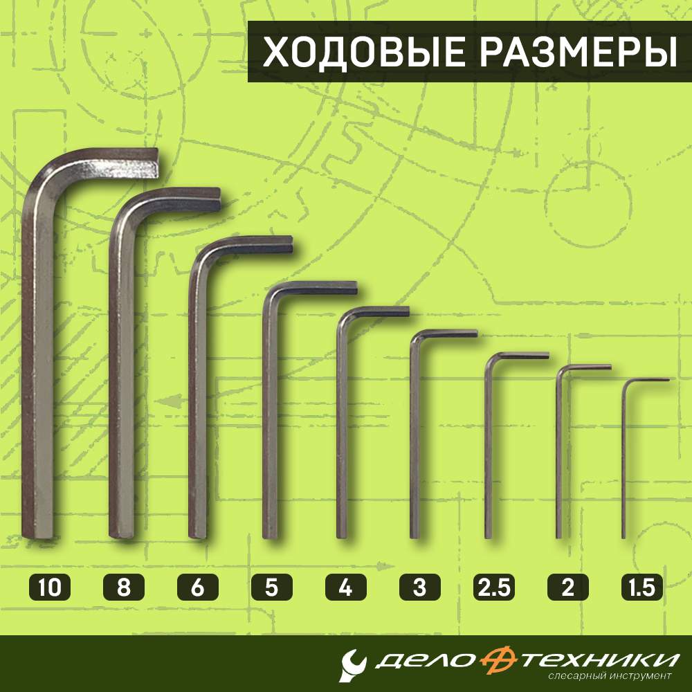 Набор ключей шестигранных коротких (1.5,2,2.5,3,4,5,6,8,10 мм) 9 шт Дело Техники 561090