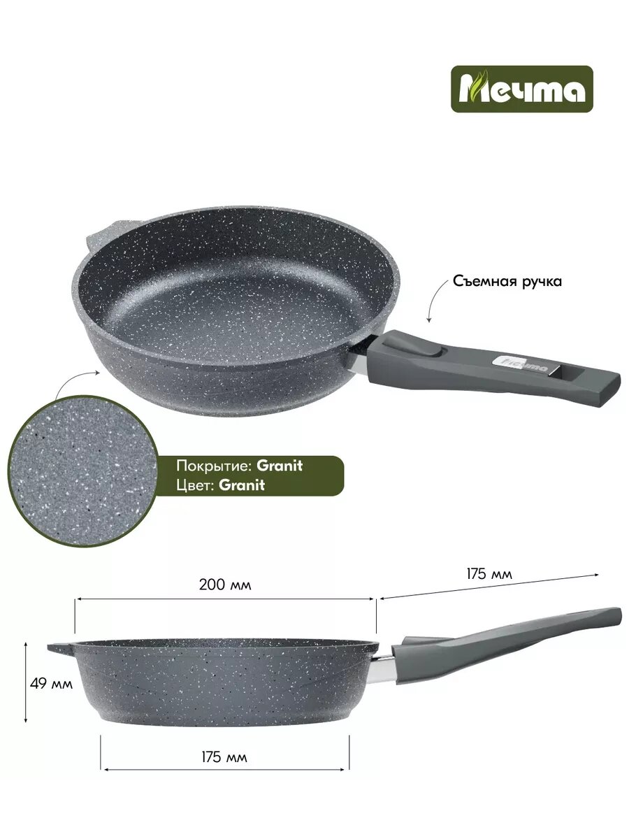 Мечта Гранит 020701, Сковорода (диаметр 20 см, съёмная ручка, гранитное антипригарное покрытие)