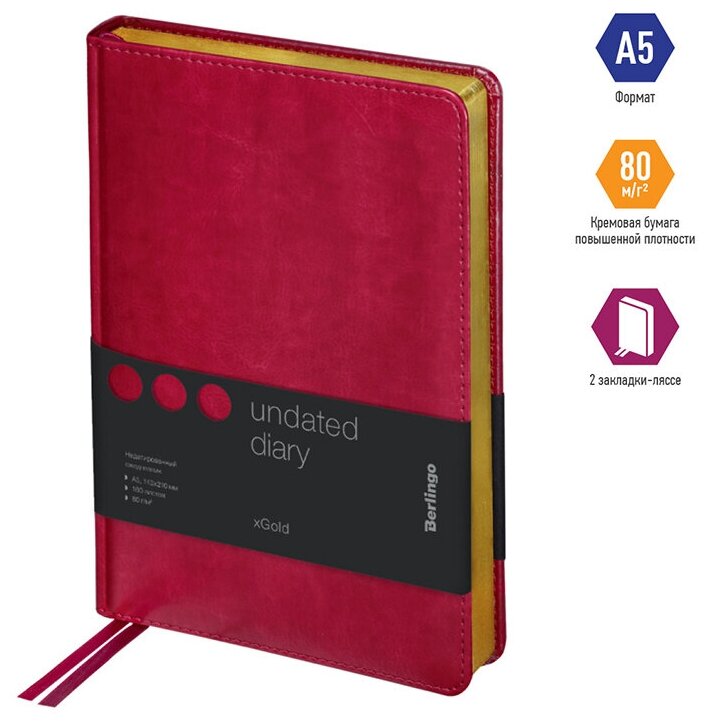 Ежедневник BERLINGO недатированный "xGold", A5, 160 л, кожзам, зол.срез, фуксия