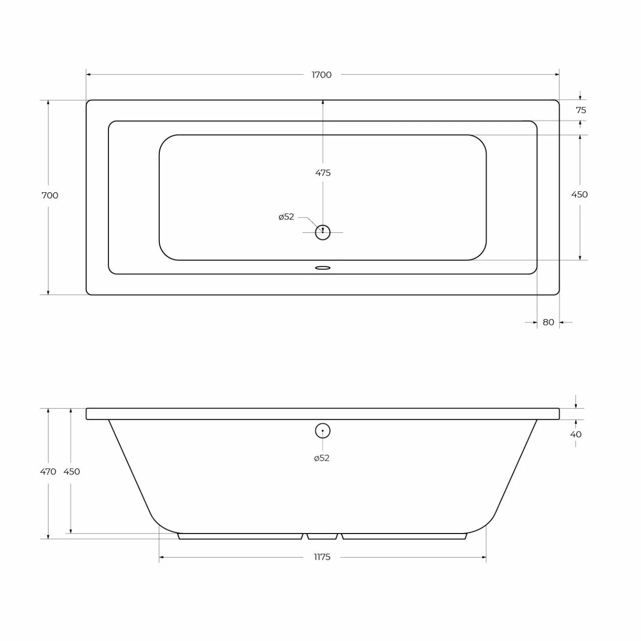Ванна акриловая Cezares Plane 170x70 PLANE-170-70-45-W37 белая