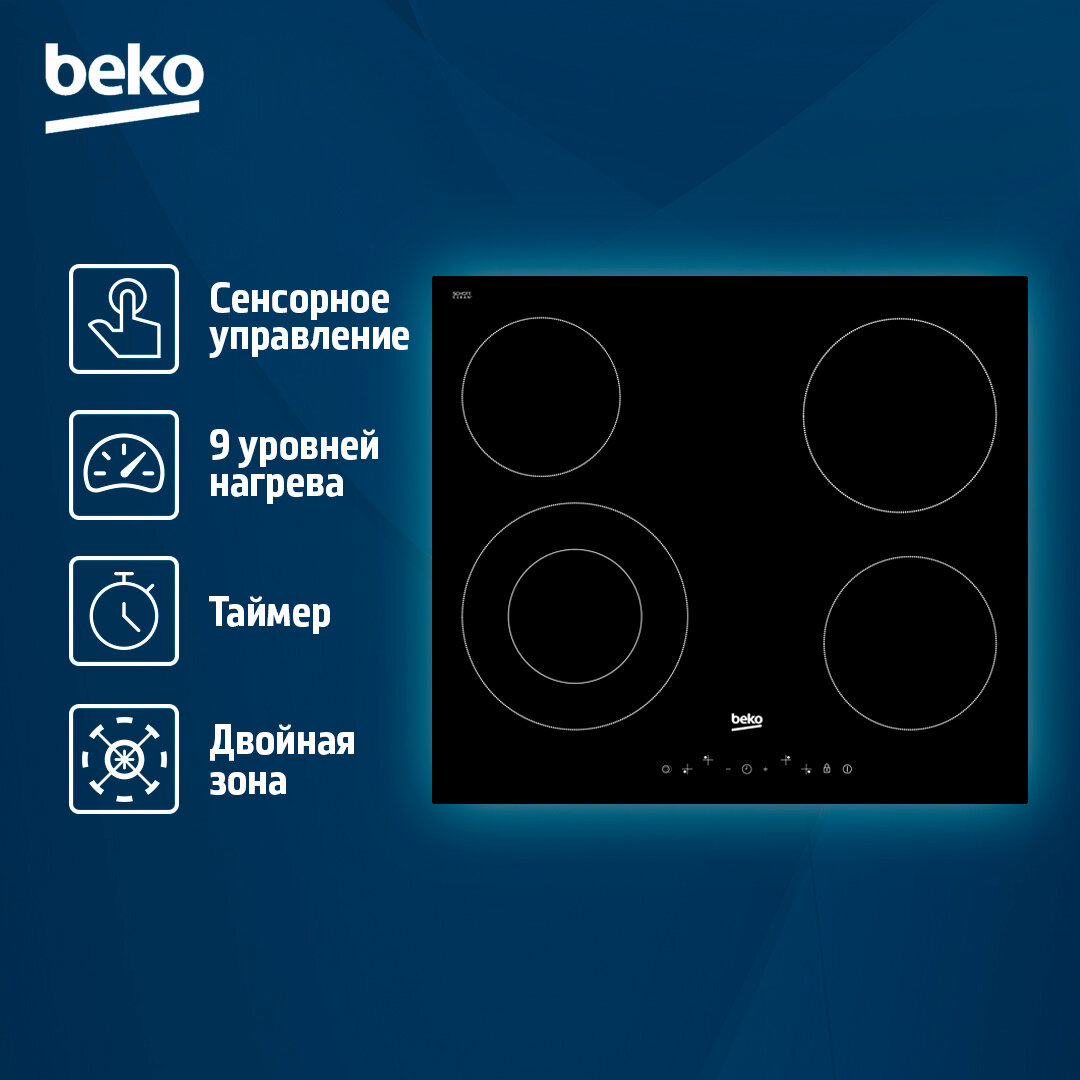 Электрическая варочная панель Beko HIC64402T, электрическая, независимая, черный