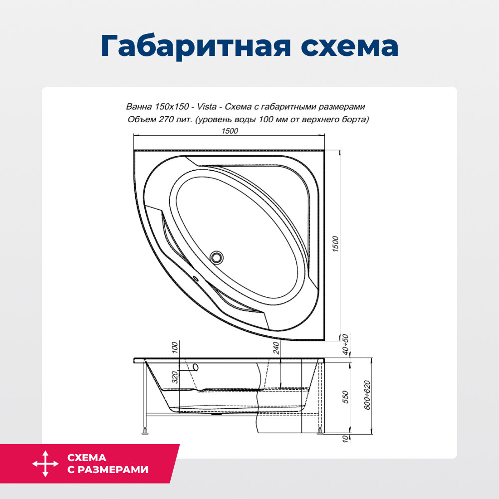 Акриловая ванна Aquanet Vista 150x150 254389 без гидромассажа интересное: