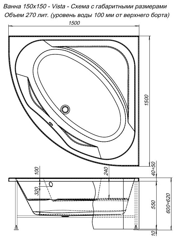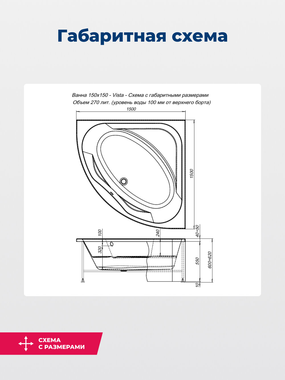 Акриловая ванна Aquanet Vista 150x150 на каркасе интересное: