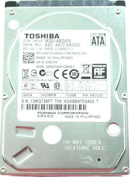 Жесткий диск Toshiba MQ01ABD075 750Gb 5400 SATAII 2,5" HDD интересное: