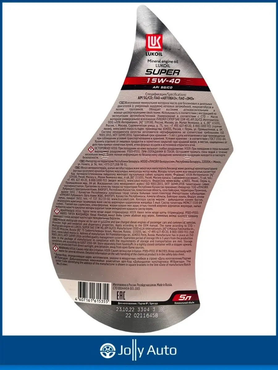 Масло моторное лукойл супер sg/cd 15w-40 минеральное 5 л 19196