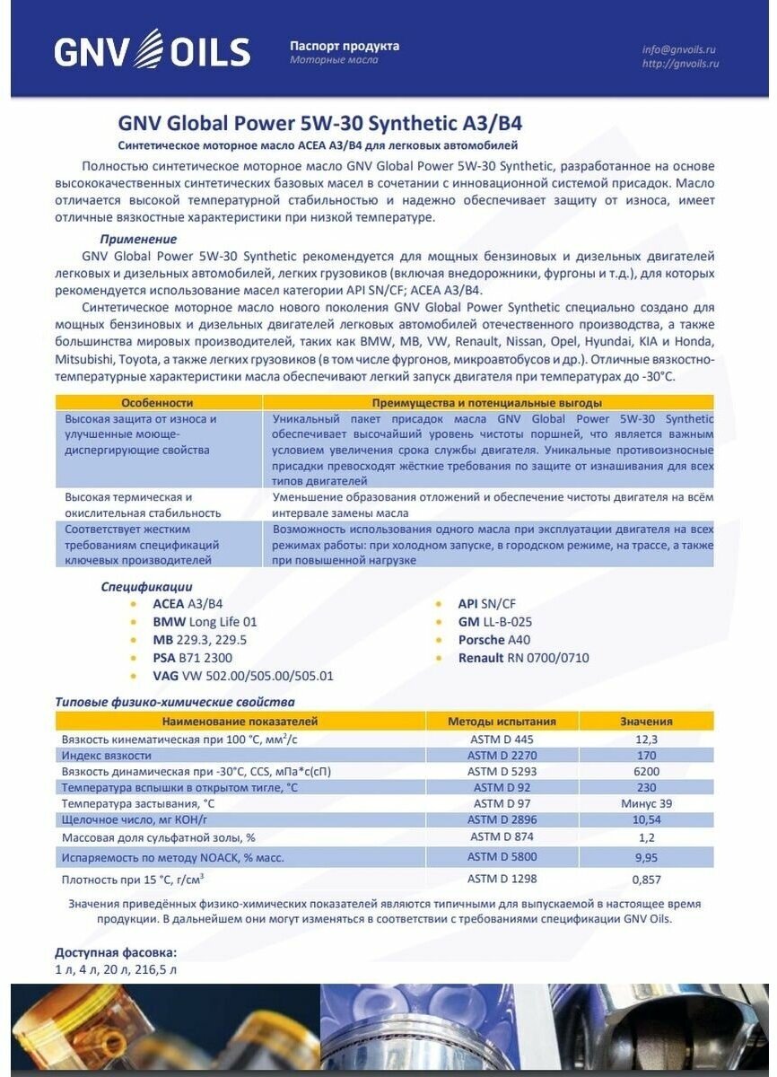 СохранитьМоторное Масло Gnv Global Power 5W30 Synthetic A3/B4, Sn/Cf 4Л GNV арт. GGP1011064010130530004 интересное: