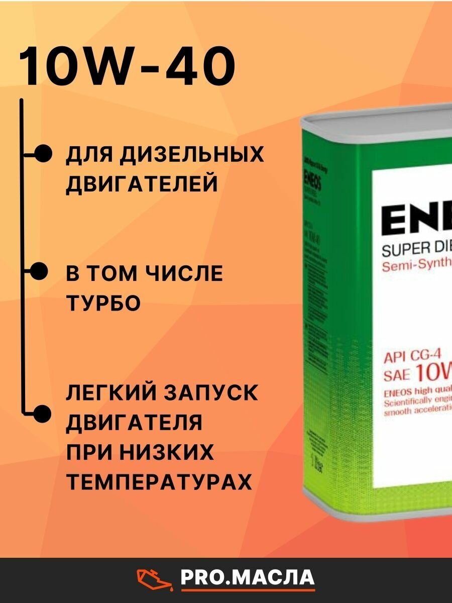 ENEOS Масло Моторное 10W40 Eneos 0,94Л Полусинтетика Super Diesel Cg-4 интересное: