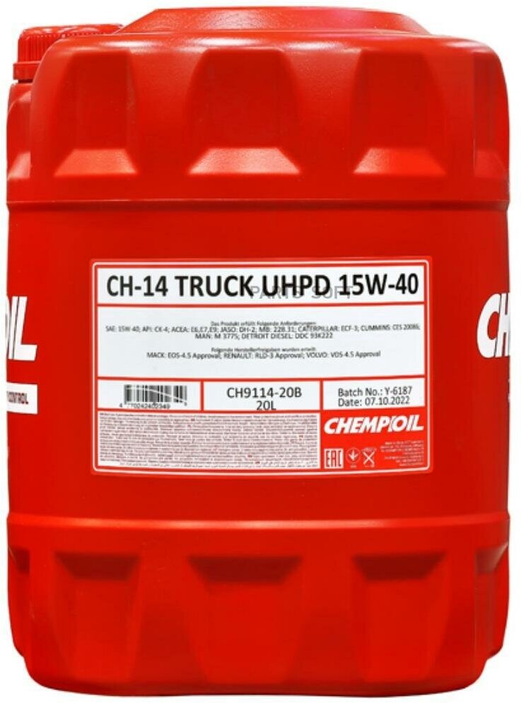 Купить 15W-40 CH-14 TRUCK UHPD CJ-4 SN, E7 E9 20л (синт. мотор. масло) CHEMPIOIL CH911420 1шт